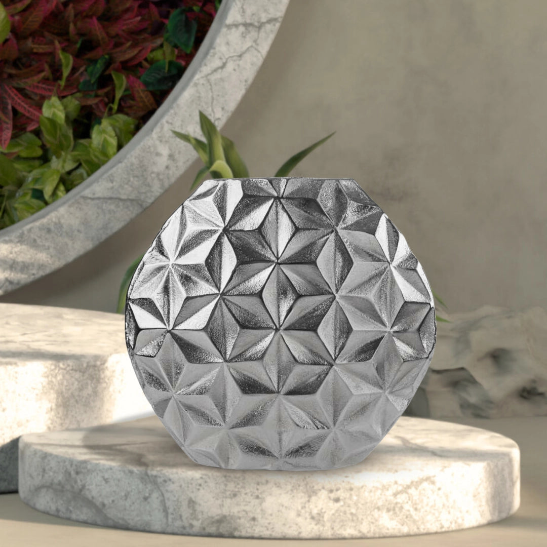 Dekorativna vazna Trion plijeni pažnju svojim apstraktnim dizajnom ispunjenim dinamičnim trokutastim oblicima koji se prepliću po njenoj površini. Kompaktna i savremenog izgleda, ova dekoracija unosi ritam i umjetnički karakter u svaki enterijer – idealna za one koji vole detalje koji se ističu.