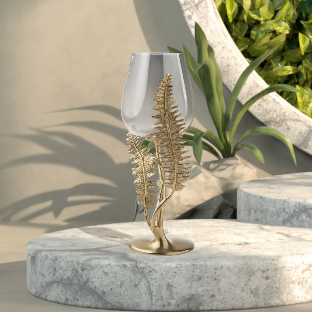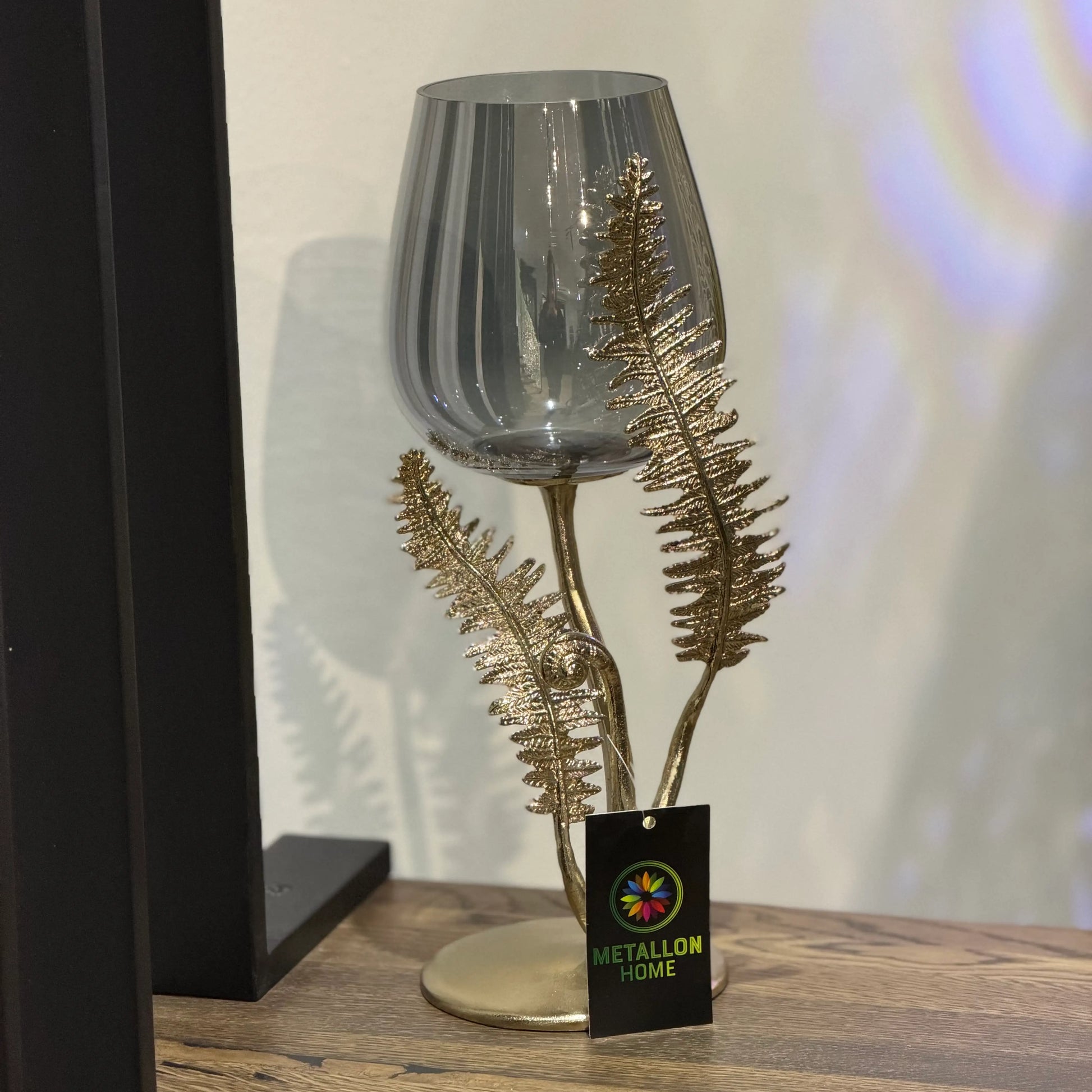 Dekoracija Aurea Gold izrađena je od prozirnog stakla u toploj smeđoj nijansi, ukrašena zlatnim listićima koji joj daju sofisticiran i bogat izgled. Savršena kao samostalna dekoracija ili za isticanje omiljenih cvetova, ova vaza unosi toplinu i glamur u svaki prostor.