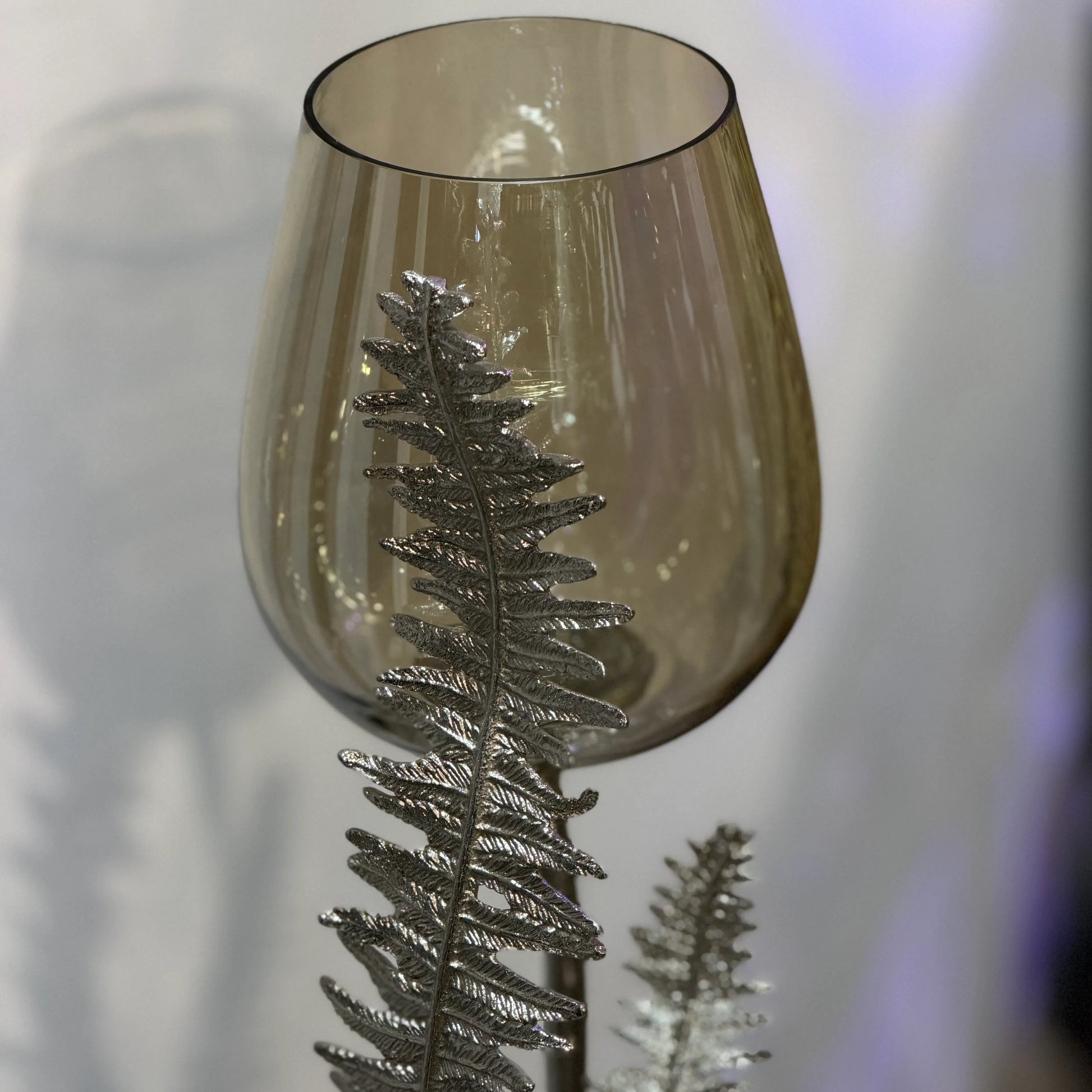 Dekoracija Aurea Silver izrađena je od prozirnog stakla u toploj smeđoj nijansi, ukrašena zlatnim listićima koji joj daju sofisticiran i bogat izgled. Savršena kao samostalna dekoracija ili za isticanje omiljenih cvetova, ova vaza unosi toplinu i glamur u svaki prostor.