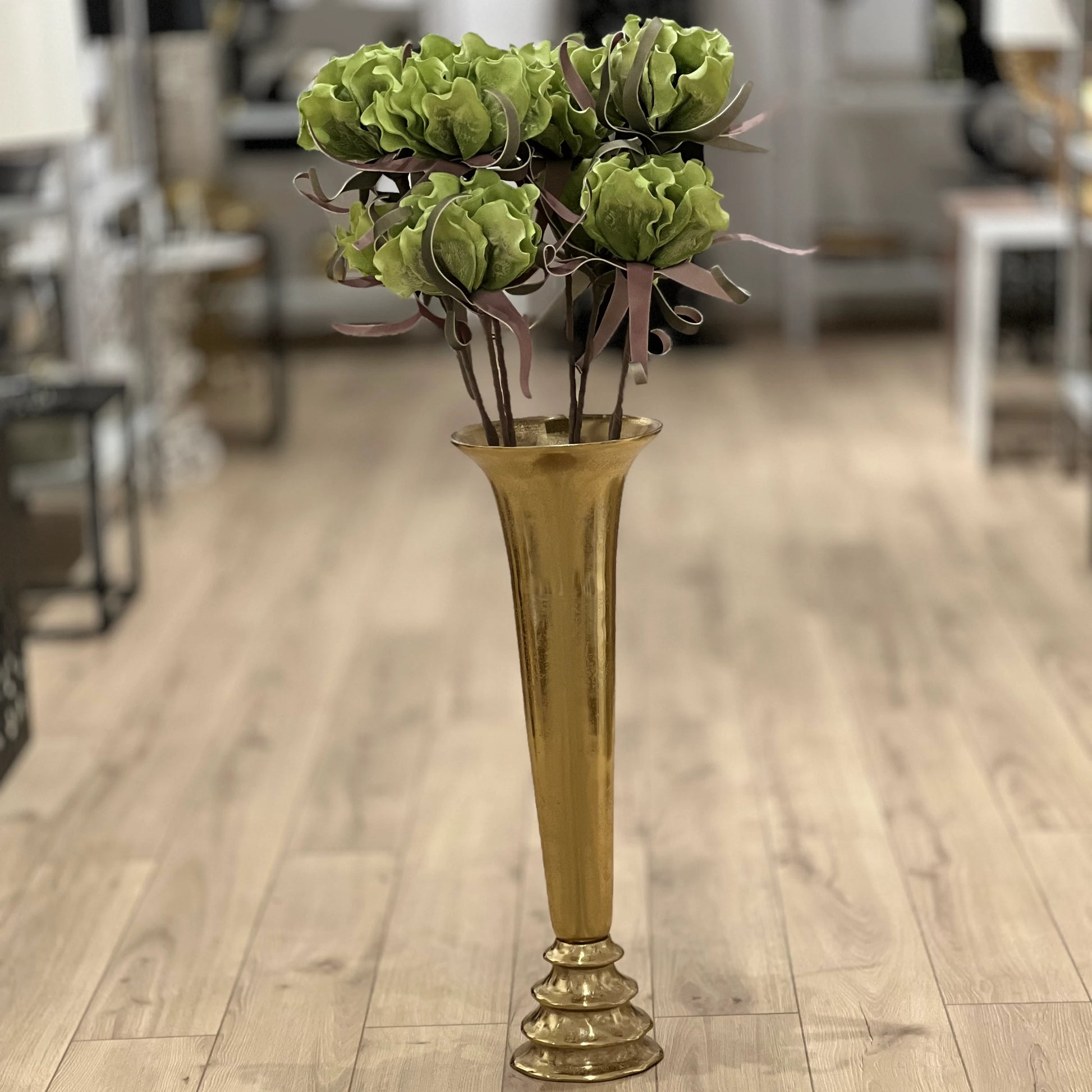 Dekorativna vaza Aisha elegantna je zlatna vaza profinjenog dizajna koja prostoru dodaje toplinu, sjaj i dašak luksuza.