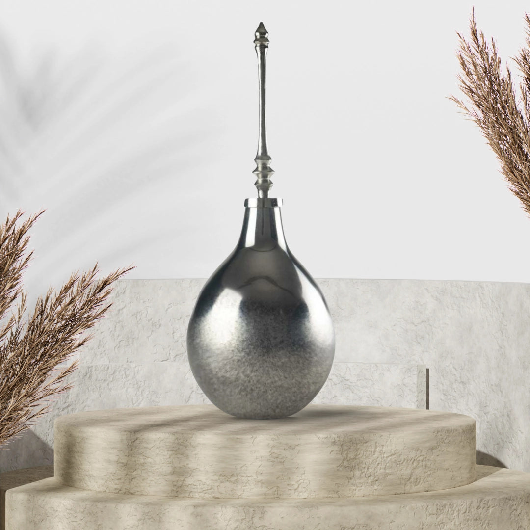 Dekorativna vazna Nahla Grande utjelovljuje čistu formu i diskretan karakter. U sivo-crnoj nijansi, s minimalističkim dizajnom, savršena je za moderne prostore koji cijene tihe, ali prisutne dekoracije. Odličan izbor za ljubitelje jednostavnosti i stila bez suvišnih detalja.
