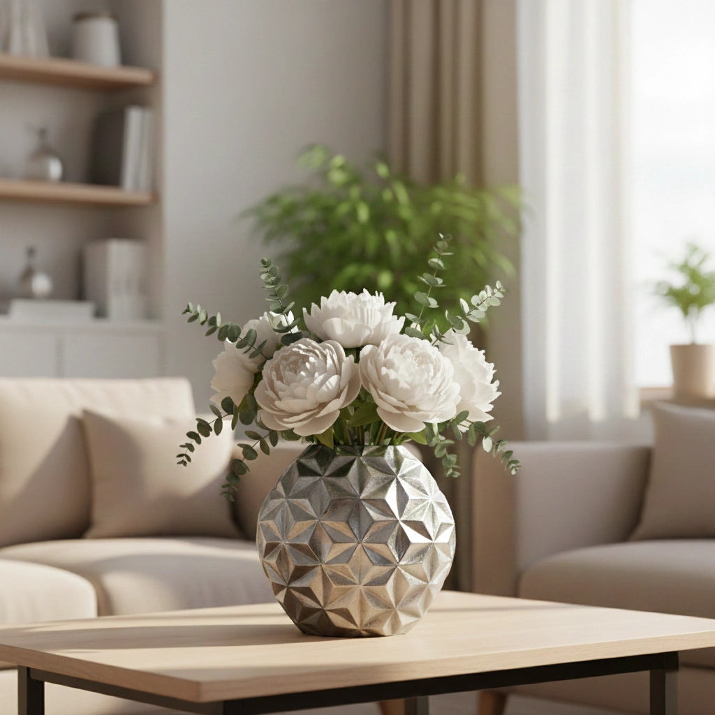 Dekorativna vazna Trion plijeni pažnju svojim apstraktnim dizajnom ispunjenim dinamičnim trokutastim oblicima koji se prepliću po njenoj površini. Kompaktna i savremenog izgleda, ova dekoracija unosi ritam i umjetnički karakter u svaki enterijer – idealna za one koji vole detalje koji se ističu.