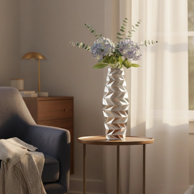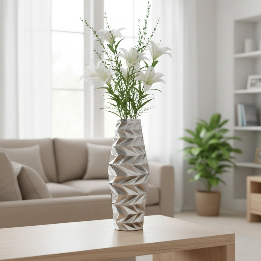 Dekorativna vazna Trion Long plijeni pažnju svojim apstraktnim dizajnom ispunjenim dinamičnim trokutastim oblicima koji se prepliću po njenoj površini. Kompaktna i savremenog izgleda, ova dekoracija unosi ritam i umjetnički karakter u svaki enterijer – idealna za one koji vole detalje koji se ističu.