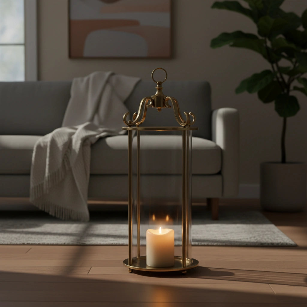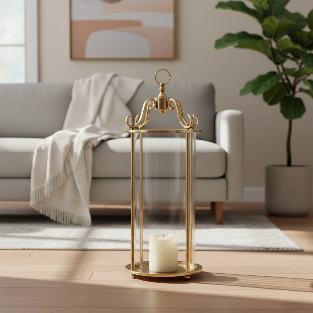 Ukrasni svijećnjak Retro donosi šarm starinskog fenjera, izrađen je od zlatnog metala sa staklenim stranama i savršen je za stvaranje tople i elegantne atmosfere.